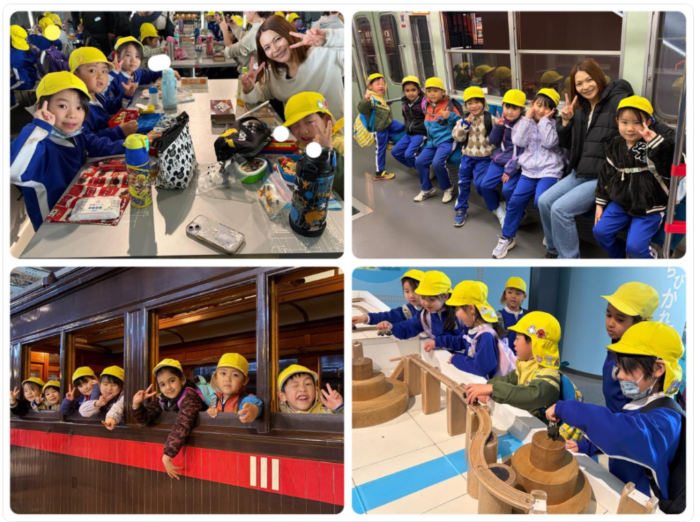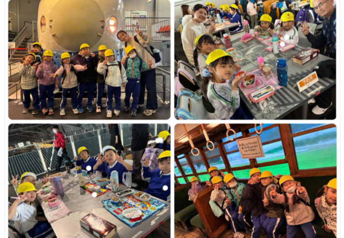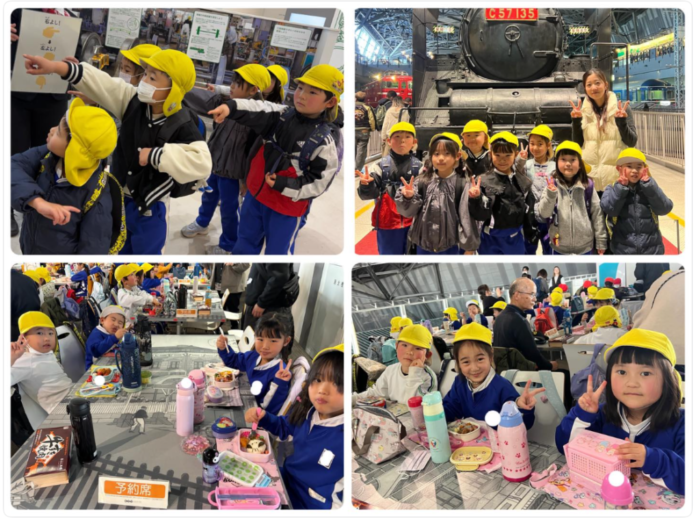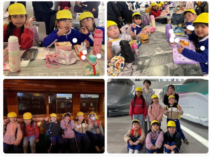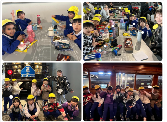 お弁当を食べているときに新幹線が通り、大興奮な子どもたちでした💗